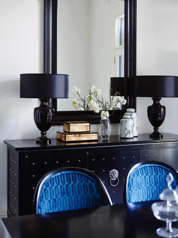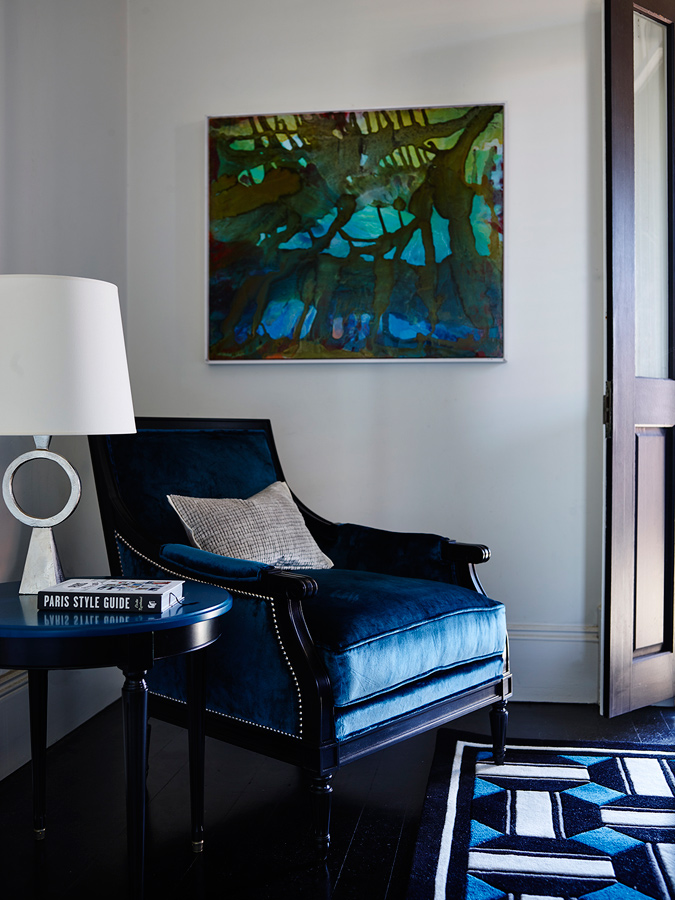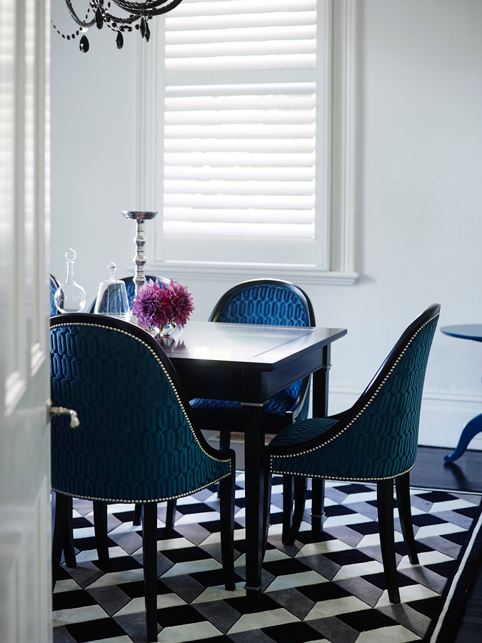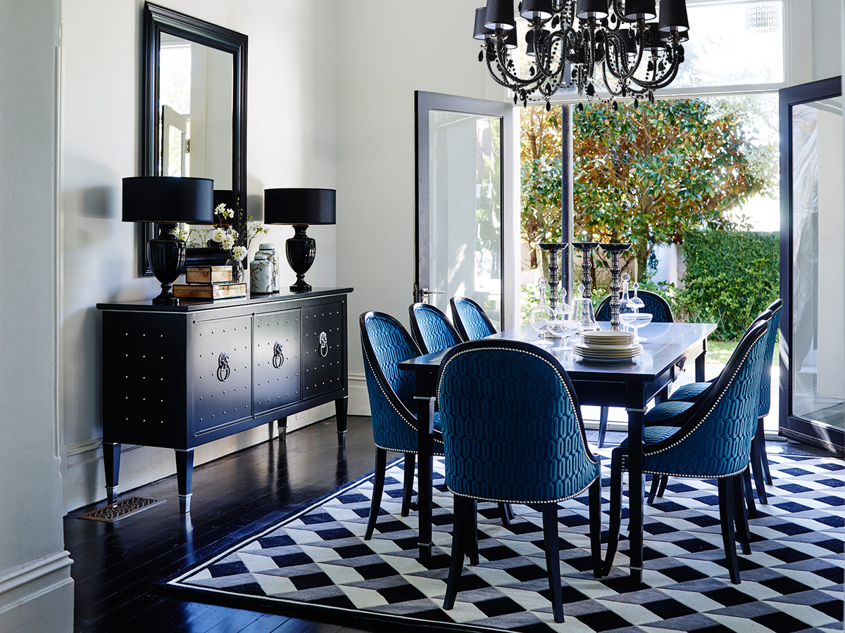 Curating with a contemporary edge, Natale has drawn together a richly textured and refined palette of black, white and peacock blues. Using in-house Grange timber finishes and marrying them with hand selected luxurious textiles from across the US and Europe, these standard pieces from the Grange collection take on a whole new character.