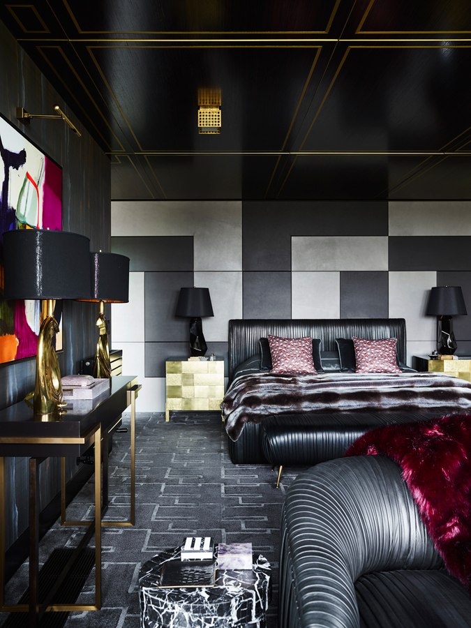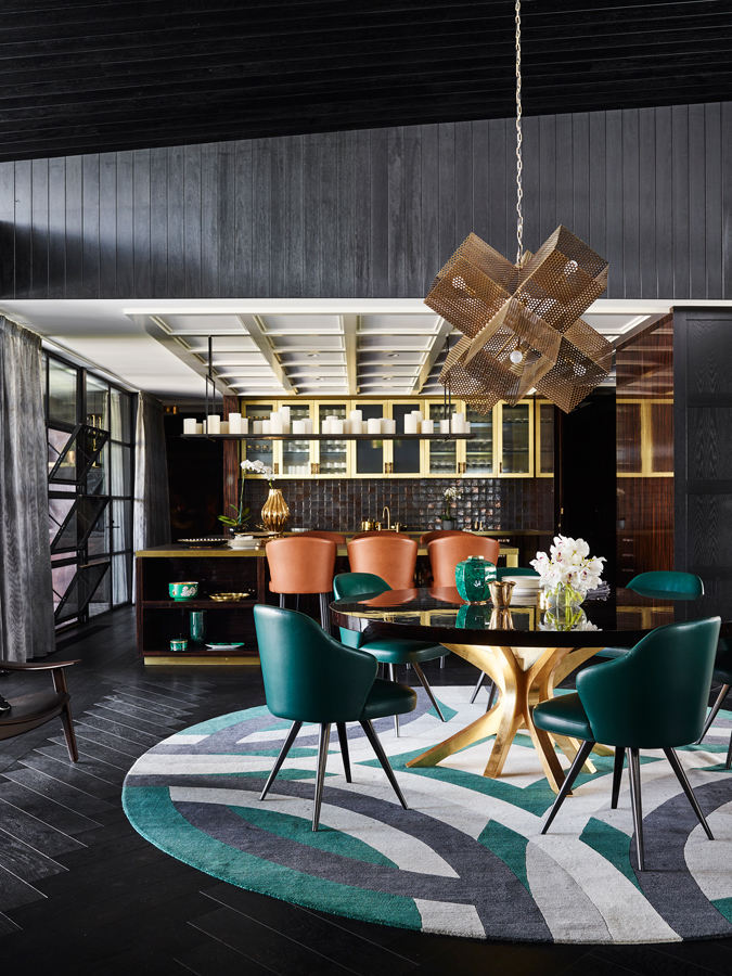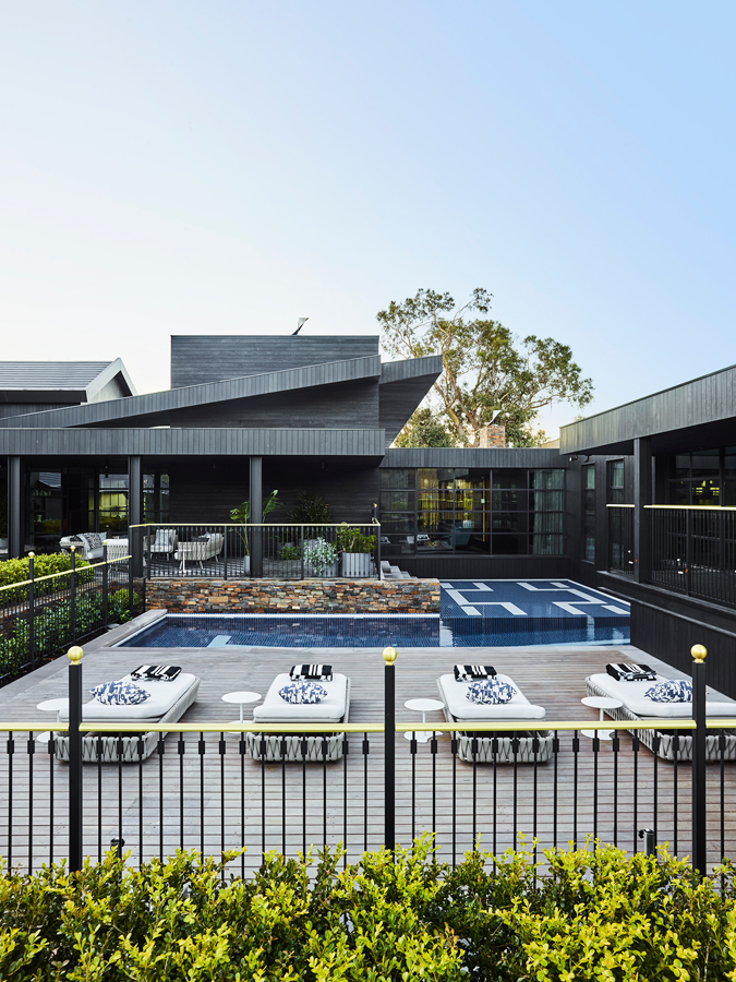 This grand estate in Victoria is a country house like no other. The two-storey, five-bedroom residence is glamorous, luxurious and sexy, a treasure trove of vibrant colours and lavish finishes set against a dramatic backdrop of black-stained timber, ebony and brass.