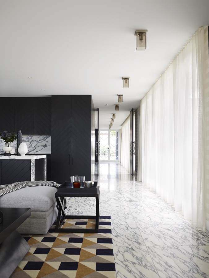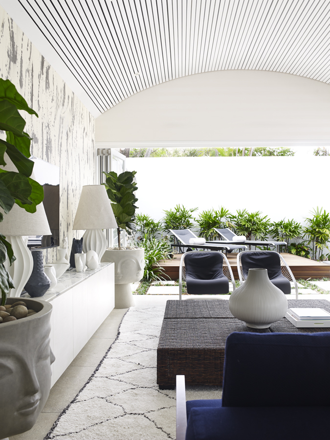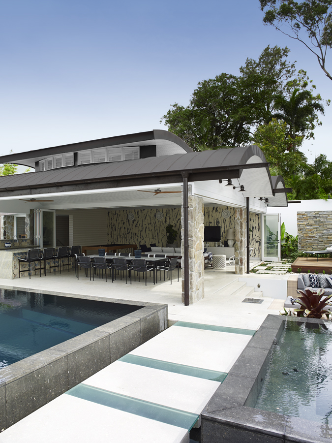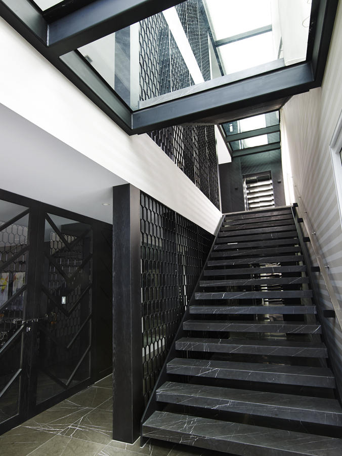 This three-storey modern Queenslander was built by Greg Natale Design and Hully Liveris as co-architects. The interior brief was for Greg Natale Design to create a full, layered and contemporary house in a palette of predominantly black and white.