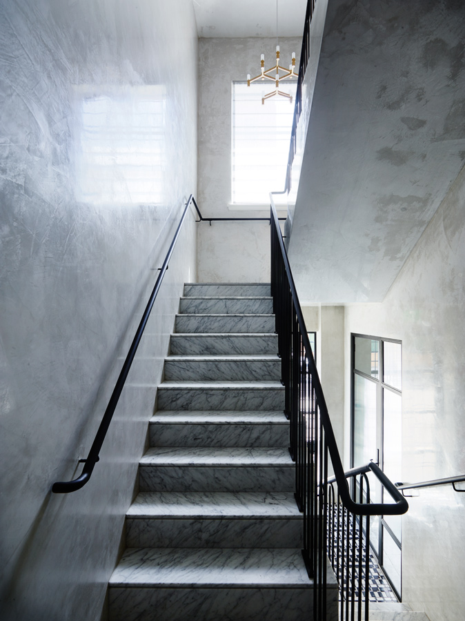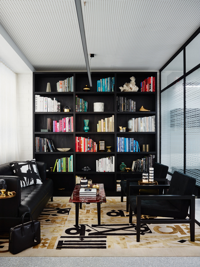 In Paul Rudolph’s design, there is a sense of blurred lines between social and private, and Greg Natale Design’s headquarters references this. The place has a residential ambience, with its inviting sofas, bookshelves and intricate, livable layers, but it also functions and feels like a studio, with its brickwork, exposed beams, polished plaster on walls and perforated plasterboard on ceilings. It’s a sophisticated workspace that showcases the brand’s aesthetics at every level.