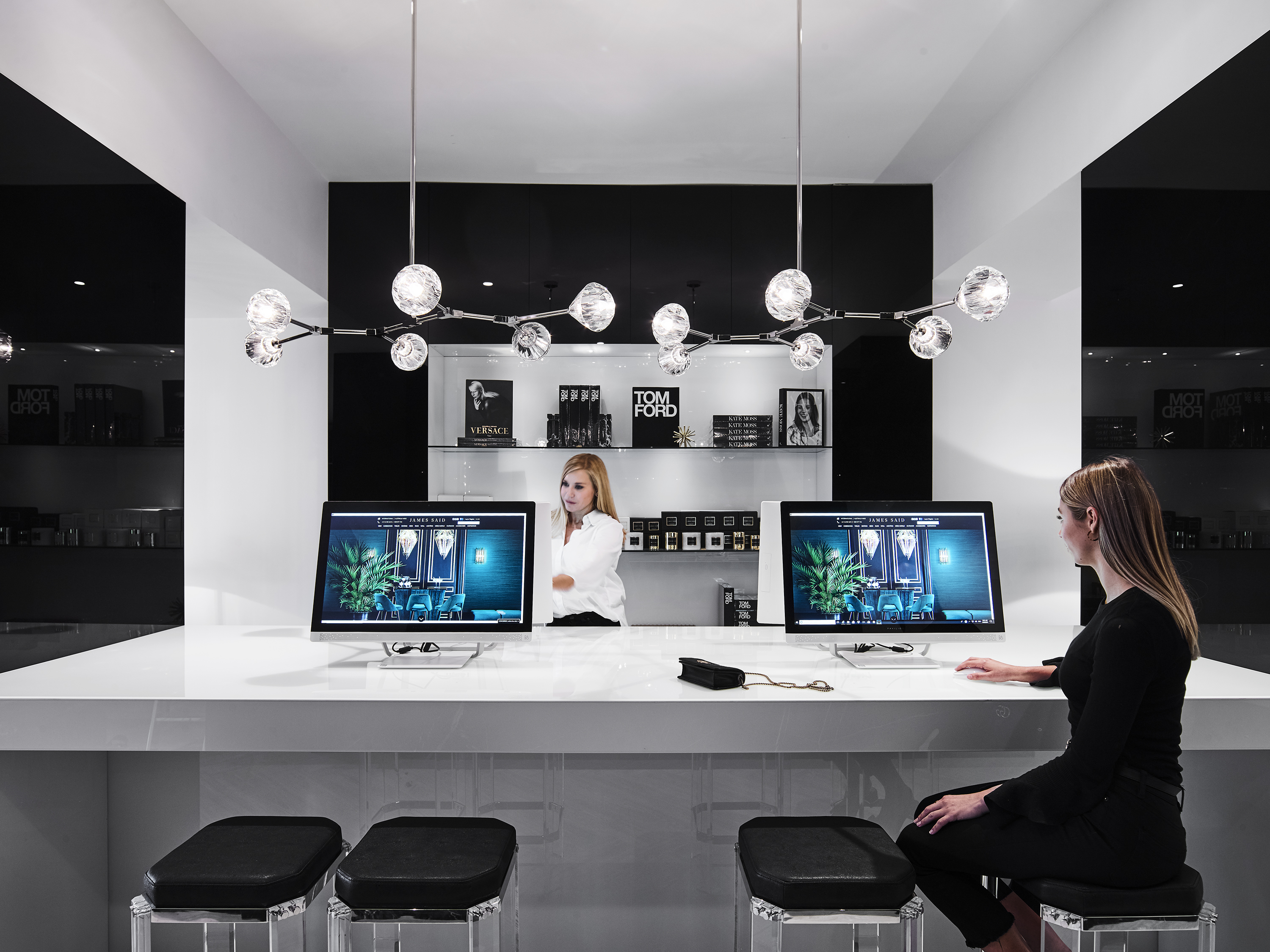 Branded a ‘gallery’, James Said’s innovative purchasing process dictated the store’s layout and design. The James Said browse bar is a key element in how the brand services its customers - that sees clients browse the styled displays then autonomously, or with the assistance of a staff member, using the integrated touch screens of the browse bar, to preview and customise the products they wish to purchase. The items are then dispatched from the James Said distribution centre.