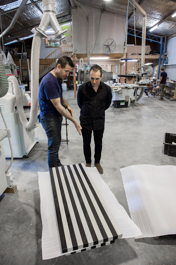 Adding just a hint of Greg Natale glamour to the composition are three brass strips set modestly between the black and white striations - two running through the bench’s vertical elements, the other running horizontally.