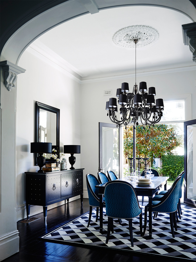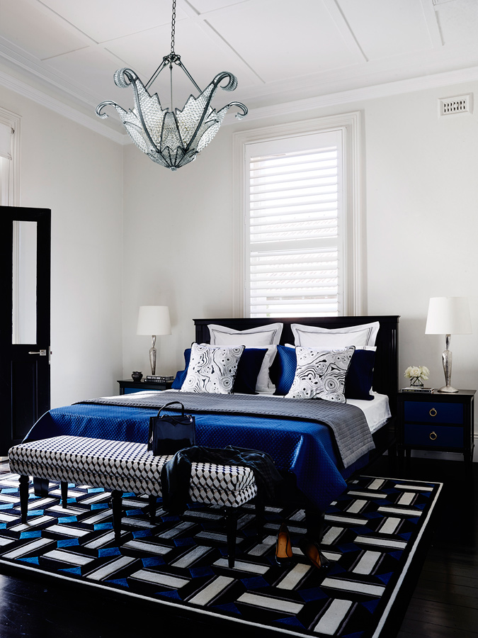 Bold, geometric prints in black, white and brilliant blues - the New Zealand wool rugs serve as perfect accompaniments to the bespoke Grange X Greg Natale pieces.