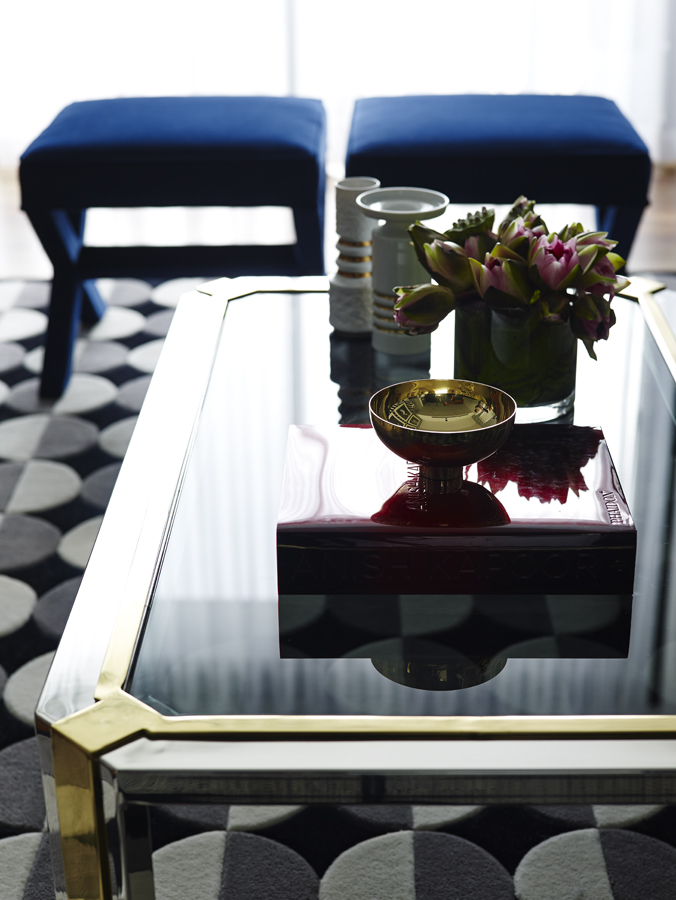 Against the black and white palette, washes of grey and the occasional punch of vivid blue ensure the effect is bold and cohesive without appearing crowded.