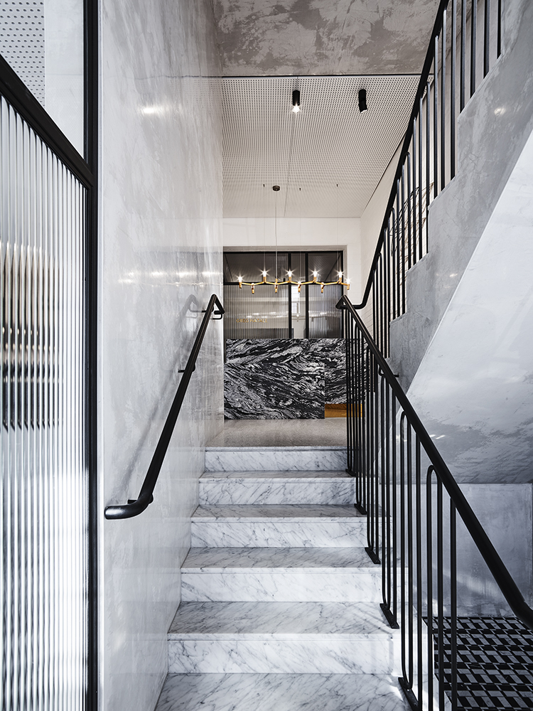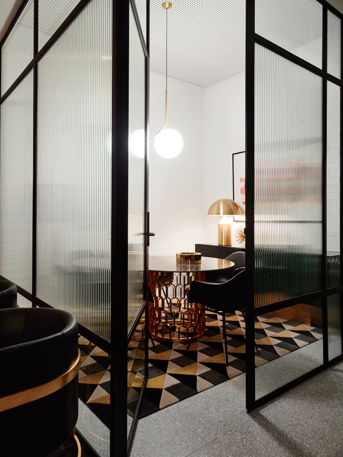 In Paul Rudolph’s design, there is a sense of blurred lines between social and private, and Greg Natale Design’s headquarters references this. The place has a residential ambience, with its inviting sofas, bookshelves and intricate, livable layers, but it also functions and feels like a studio, with its brickwork, exposed beams, polished plaster on walls and perforated plasterboard on ceilings. It’s a sophisticated workspace that showcases the brand’s aesthetics at every level.